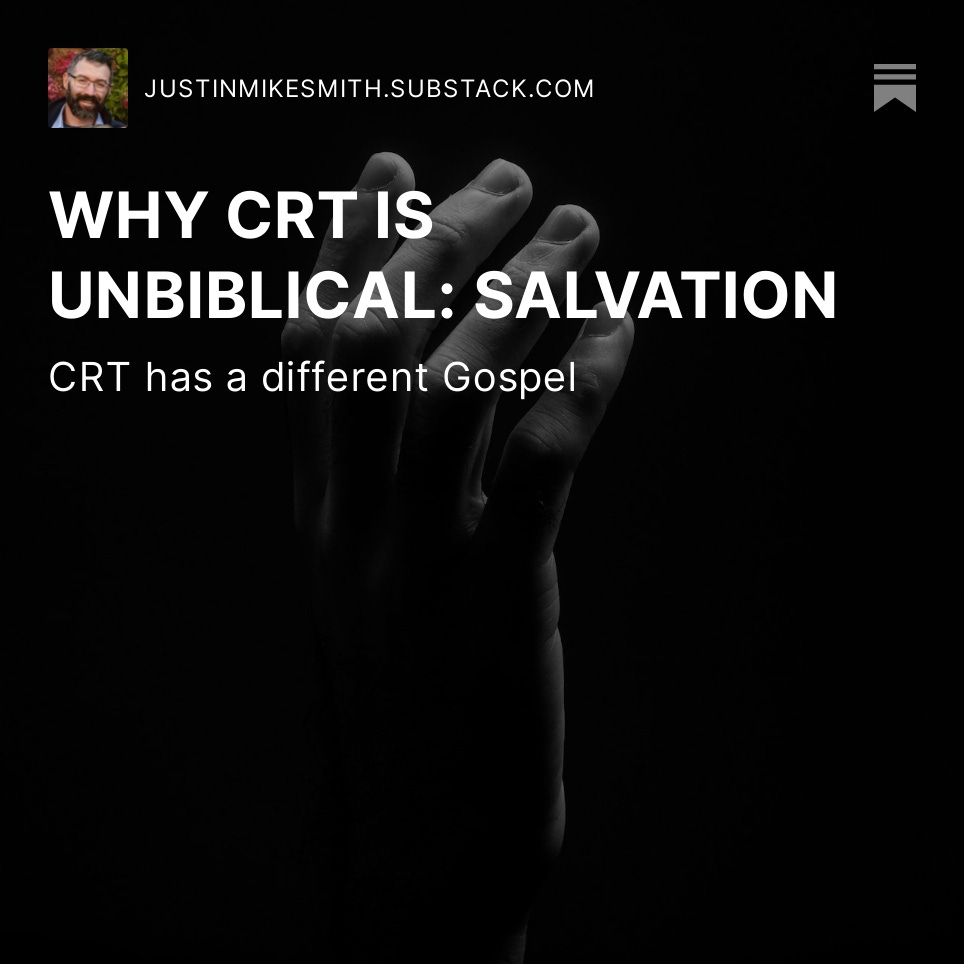 Since CRT redefines sin it therefore redefines salvation. And that means a different Gospel. Which means the destinies of souls are in jeopardy. And that means Paul had something to say about it, “If anybody preaches to you another gospel let them be under God’s curse.”1 CRT’s view of salvation is not going to save anyone from God’s judgment.
